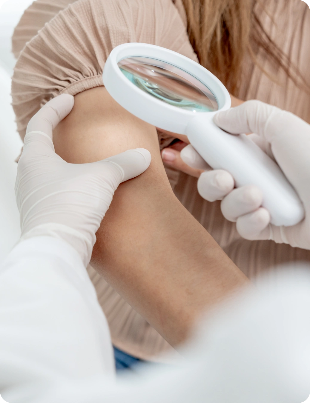 - Avaliação de lesões cutâneas suspeitas – análise e acompanhamento de pintas, manchas e lesões que exigem investigação especializada.